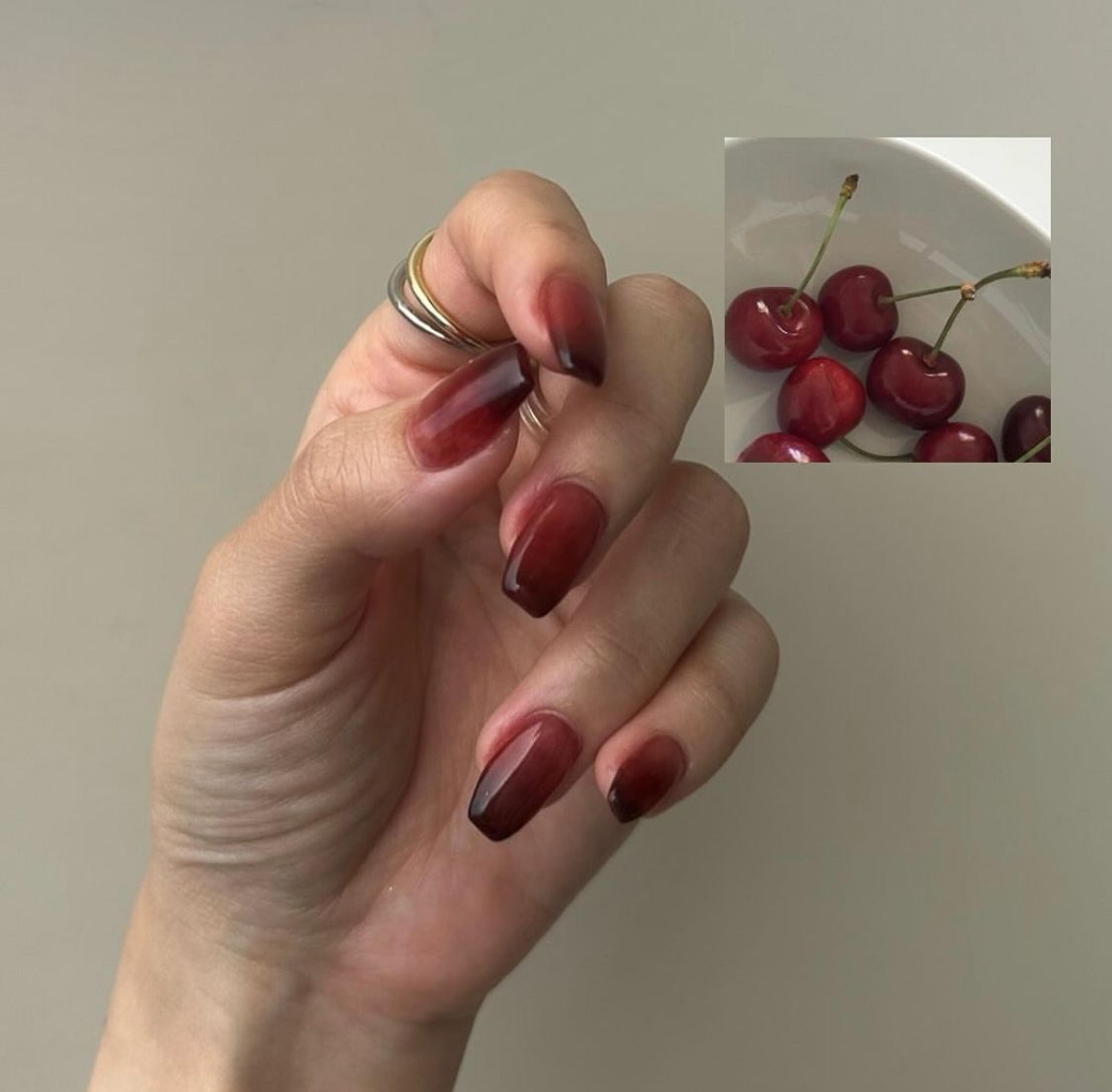 - Dark cherry nails